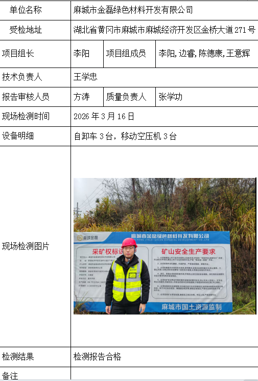 麻城市金磊绿色材料开发有限公司2026/04/082026年检测检验项目 00 上一篇: 大冶市兴红矿业有限公司下一篇: 湖北众联矿业有限公司 相关推荐 吉安市青原区茶家山采石场(普通合伙) 2026/04/09 3 查看全文 阳新县宏达矿业有限责任公司 2026/04/08 1 查看全文 湖北兴发化工集团股份有限公司兴-神磷矿瓦屋矿区IV矿段 2026/04/08 1 查看全文 湖北冯家山矿业有限责任公司 2026/04/08 1 查看全文 您好!请登录 点击取消回复 称呼: 邮箱: 点击这里取消回复。