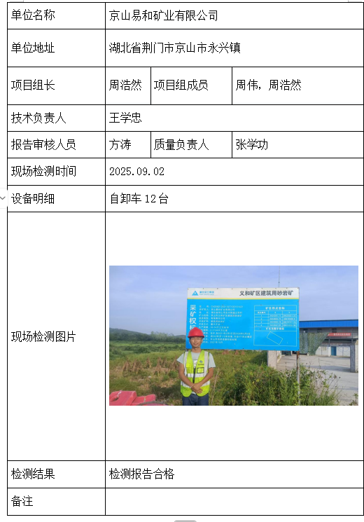 京山易和矿业有限公司2026/04/092025年检测检验项目 50 上一篇: 保康县保丰矿业有限公司石灰山磷矿袁家沟矿井下一篇: 阳新县白沙镇枫树下村铜矿 相关推荐 长阳县勒石包方解石矿 2026/04/10 7 查看全文 大冶市灵乡正旺铁矿二采区 2026/04/10 4 查看全文 大冶市陈贵安船矿业有限公司 2026/04/10 9 查看全文 保康楚烽化工有限责任公司(楚烽磷矿) 2026/04/10 6 查看全文 您好!请登录 点击取消回复 称呼: 邮箱: 点击这里取消回复。