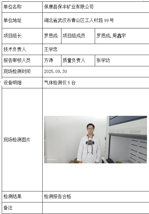保康县保丰矿业有限公司2026/04/092025年检测检验项目 20 上一篇: 湖北长投矿业松滋有限公司下一篇: 荆门市放马山中磷矿业有限公司 相关推荐 长阳县勒石包方解石矿 2026/04/10 7 查看全文 大冶市灵乡正旺铁矿二采区 2026/04/10 4 查看全文 大冶市陈贵安船矿业有限公司 2026/04/10 9 查看全文 保康楚烽化工有限责任公司(楚烽磷矿) 2026/04/10 6 查看全文 您好!请登录 点击取消回复 称呼: 邮箱: 点击这里取消回复。