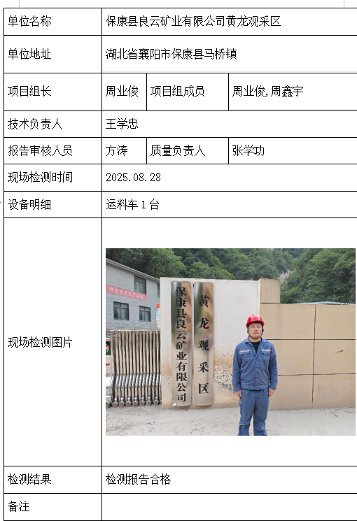保康县良云矿业有限公司黄龙观采区2026/04/092025年检测检验项目 30 上一篇: 湖北巴山绿松石有限责任公司石灰窑矿段下一篇: 保康县良云矿业有限公司堰垭采区 相关推荐 长阳县勒石包方解石矿 2026/04/10 7 查看全文 大冶市灵乡正旺铁矿二采区 2026/04/10 4 查看全文 大冶市陈贵安船矿业有限公司 2026/04/10 9 查看全文 保康楚烽化工有限责任公司(楚烽磷矿) 2026/04/10 6 查看全文 您好!请登录 点击取消回复 称呼: 邮箱: 点击这里取消回复。