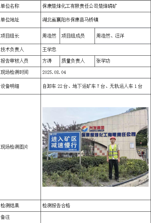 保康楚烽化工有限责任公司楚烽磷矿2026/04/092025年检测检验项目 20 上一篇: 黄石市陈贵铜山口矿业股份有限公司下一篇: 大冶有色金属有限责任公司铜山口铜矿 相关推荐 长阳县勒石包方解石矿 2026/04/10 7 查看全文 大冶市灵乡正旺铁矿二采区 2026/04/10 4 查看全文 大冶市陈贵安船矿业有限公司 2026/04/10 9 查看全文 保康楚烽化工有限责任公司(楚烽磷矿) 2026/04/10 6 查看全文 您好!请登录 点击取消回复 称呼: 邮箱: 点击这里取消回复。