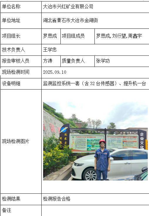 大冶市兴红矿业有限公司2026/04/092025年检测检验项目 20 上一篇: 湖北杉树垭矿业有限公司下一篇: 新干县新衡矿业有限公司 相关推荐 长阳县勒石包方解石矿 2026/04/10 7 查看全文 大冶市灵乡正旺铁矿二采区 2026/04/10 4 查看全文 大冶市陈贵安船矿业有限公司 2026/04/10 9 查看全文 保康楚烽化工有限责任公司(楚烽磷矿) 2026/04/10 6 查看全文 您好!请登录 点击取消回复 称呼: 邮箱: 点击这里取消回复。