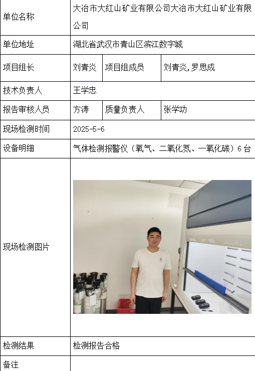大冶市大红山矿业有限公司大冶市大红山矿业有限公司2026/04/092025年检测检验项目 20 上一篇: 钟祥市秦冲磷矿钟祥市秦冲磷矿下一篇: 五矿二十三冶建设集团有限公司五矿二十三冶建设集团有限公司 相关推荐 长阳县勒石包方解石矿 2026/04/10 7 查看全文 大冶市灵乡正旺铁矿二采区 2026/04/10 4 查看全文 大冶市陈贵安船矿业有限公司 2026/04/10 9 查看全文 保康楚烽化工有限责任公司(楚烽磷矿) 2026/04/10 6 查看全文 您好!请登录 点击取消回复 称呼: 邮箱: 点击这里取消回复。