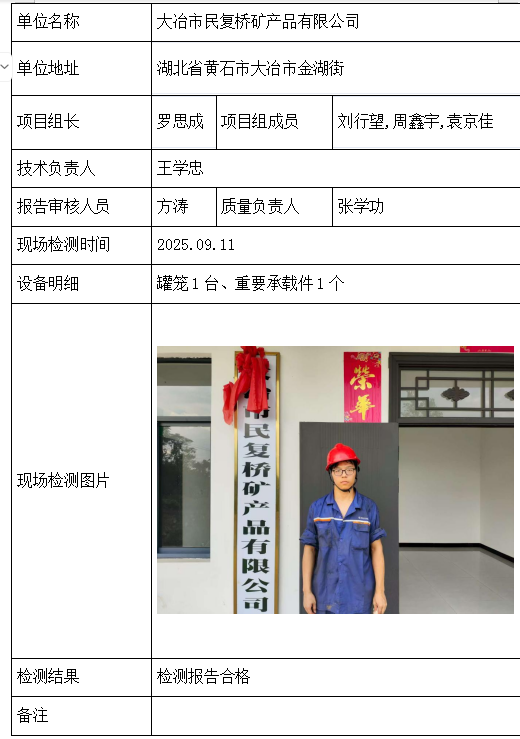大冶市民复桥矿产品有限公司2026/04/092025年检测检验项目 20 上一篇: 湖北三鑫金铜股份有限公司下一篇: 湖北兴顺新材料有限公司后坪磷矿 相关推荐 长阳县勒石包方解石矿 2026/04/10 7 查看全文 大冶市灵乡正旺铁矿二采区 2026/04/10 4 查看全文 大冶市陈贵安船矿业有限公司 2026/04/10 9 查看全文 保康楚烽化工有限责任公司(楚烽磷矿) 2026/04/10 6 查看全文 您好!请登录 点击取消回复 称呼: 邮箱: 点击这里取消回复。