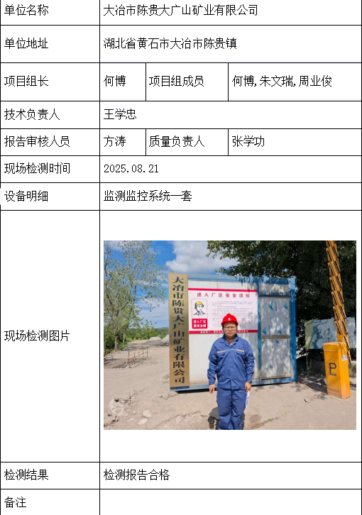 大冶市陈贵大广山矿业有限公司2026/04/092025年检测检验项目 20 上一篇: 武穴市民本矿产资源开发有限公司下一篇: 保康县保丰矿业有限公司石灰山磷矿Ⅲ采区 相关推荐 长阳县勒石包方解石矿 2026/04/10 7 查看全文 大冶市灵乡正旺铁矿二采区 2026/04/10 4 查看全文 大冶市陈贵安船矿业有限公司 2026/04/10 9 查看全文 保康楚烽化工有限责任公司(楚烽磷矿) 2026/04/10 6 查看全文 您好!请登录 点击取消回复 称呼: 邮箱: 点击这里取消回复。