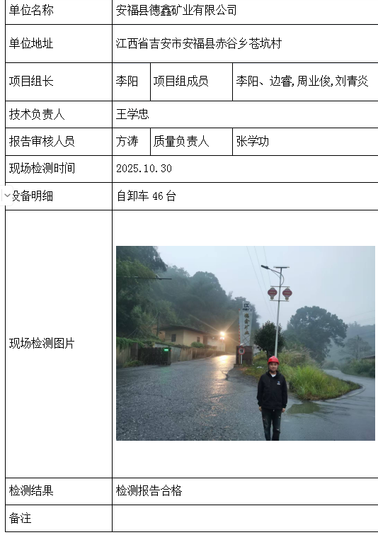 安福县德鑫矿业有限公司2026/04/092025年检测检验项目 20 上一篇: 阳新县白沙镇枫树下村铜矿下一篇: 万安豪德实业有限公司 相关推荐 长阳县勒石包方解石矿 2026/04/10 7 查看全文 大冶市灵乡正旺铁矿二采区 2026/04/10 4 查看全文 大冶市陈贵安船矿业有限公司 2026/04/10 9 查看全文 保康楚烽化工有限责任公司(楚烽磷矿) 2026/04/10 6 查看全文 您好!请登录 点击取消回复 称呼: 邮箱: 点击这里取消回复。