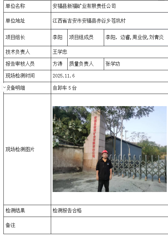 安福县新福矿业有限责任公司2026/04/092025年检测检验项目 20 上一篇: 湖北神农磷业科技股份有限公司寨湾磷矿下一篇: 安福县书山高岭土矿 相关推荐 长阳县勒石包方解石矿 2026/04/10 7 查看全文 大冶市灵乡正旺铁矿二采区 2026/04/10 4 查看全文 大冶市陈贵安船矿业有限公司 2026/04/10 9 查看全文 保康楚烽化工有限责任公司(楚烽磷矿) 2026/04/10 6 查看全文 您好!请登录 点击取消回复 称呼: 邮箱: 点击这里取消回复。