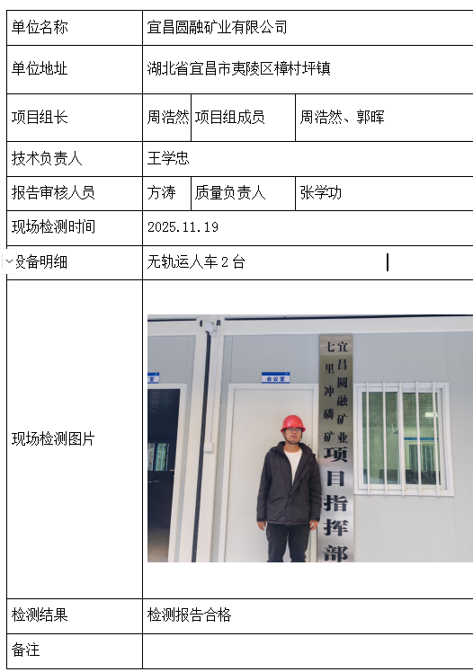 宜昌圆融矿业有限公司2026/04/092025年检测检验项目 20 上一篇: 大冶市方盛矿业有限责任公司下一篇: 中国葛洲坝集团路桥工程有限公司 相关推荐 长阳县勒石包方解石矿 2026/04/10 7 查看全文 大冶市灵乡正旺铁矿二采区 2026/04/10 4 查看全文 大冶市陈贵安船矿业有限公司 2026/04/10 9 查看全文 保康楚烽化工有限责任公司(楚烽磷矿) 2026/04/10 6 查看全文 您好!请登录 点击取消回复 称呼: 邮箱: 点击这里取消回复。