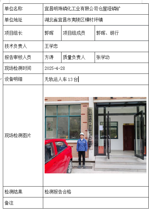 宜昌明珠磷化工业有限公司仓屋垭磷矿2026/04/092025年检测检验项目 20 上一篇: 湖北柳树沟矿业股份有限公司下一篇: 湖北宜化江家墩矿业有限公司 相关推荐 长阳县勒石包方解石矿 2026/04/10 7 查看全文 大冶市灵乡正旺铁矿二采区 2026/04/10 4 查看全文 大冶市陈贵安船矿业有限公司 2026/04/10 9 查看全文 保康楚烽化工有限责任公司(楚烽磷矿) 2026/04/10 6 查看全文 您好!请登录 点击取消回复 称呼: 邮箱: 点击这里取消回复。