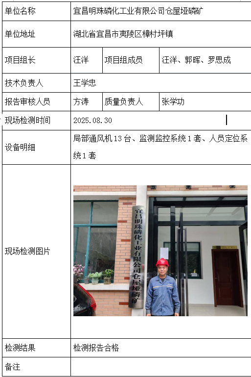宜昌明珠磷化工业有限公司仓屋垭磷矿2026/04/092025年检测检验项目 30 上一篇: 鄂州市鑫斌矿业有限公司下一篇: 鄂州市鑫斌矿业有限公司 相关推荐 长阳县勒石包方解石矿 2026/04/10 7 查看全文 大冶市灵乡正旺铁矿二采区 2026/04/10 4 查看全文 大冶市陈贵安船矿业有限公司 2026/04/10 9 查看全文 保康楚烽化工有限责任公司(楚烽磷矿) 2026/04/10 6 查看全文 您好!请登录 点击取消回复 称呼: 邮箱: 点击这里取消回复。