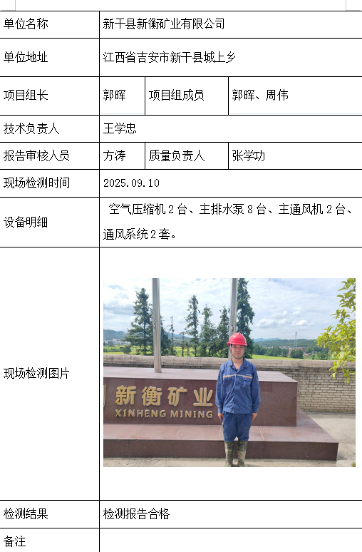 新干县新衡矿业有限公司2026/04/092025年检测检验项目 40 上一篇: 大冶市兴红矿业有限公司下一篇: 湖北兴宏矿业有限公司 相关推荐 长阳县勒石包方解石矿 2026/04/10 7 查看全文 大冶市灵乡正旺铁矿二采区 2026/04/10 4 查看全文 大冶市陈贵安船矿业有限公司 2026/04/10 9 查看全文 保康楚烽化工有限责任公司(楚烽磷矿) 2026/04/10 6 查看全文 您好!请登录 点击取消回复 称呼: 邮箱: 点击这里取消回复。
