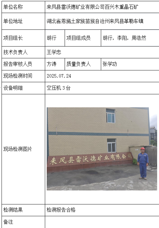 来凤县雷沃德矿业有限公司百兴木重晶石矿2026/04/092025年检测检验项目 20 上一篇: 大冶市方盛矿业有限责任公司下一篇: 来凤县兴盛矿产品有限公司 相关推荐 长阳县勒石包方解石矿 2026/04/10 7 查看全文 大冶市灵乡正旺铁矿二采区 2026/04/10 4 查看全文 大冶市陈贵安船矿业有限公司 2026/04/10 9 查看全文 保康楚烽化工有限责任公司(楚烽磷矿) 2026/04/10 6 查看全文 您好!请登录 点击取消回复 称呼: 邮箱: 点击这里取消回复。