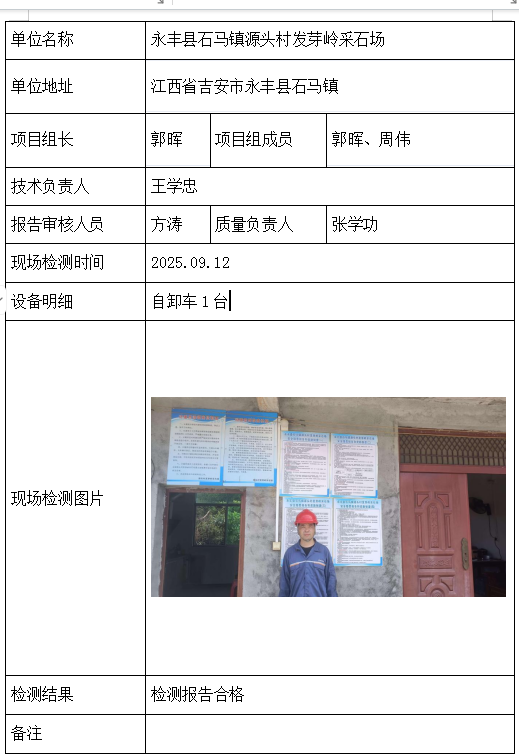 永丰县石马镇源头村发芽岭采石场2026/04/092025年检测检验项目 20 上一篇: 湖北兴顺新材料有限公司后坪磷矿下一篇: 荆门市放马山中磷矿业有限公司 相关推荐 长阳县勒石包方解石矿 2026/04/10 7 查看全文 大冶市灵乡正旺铁矿二采区 2026/04/10 4 查看全文 大冶市陈贵安船矿业有限公司 2026/04/10 9 查看全文 保康楚烽化工有限责任公司(楚烽磷矿) 2026/04/10 6 查看全文 您好!请登录 点击取消回复 称呼: 邮箱: 点击这里取消回复。
