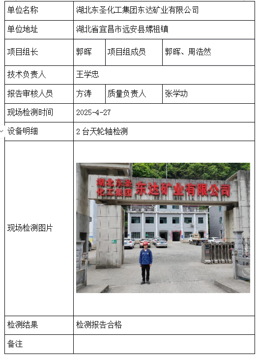 湖北东圣化工集团东达矿业有限公司2026/04/092025年检测检验项目 20 上一篇: 钟祥市龙会山矿业有限公司虎山磷矿下一篇: 湖北京兰水泥集团有限公司 相关推荐 长阳县勒石包方解石矿 2026/04/10 7 查看全文 大冶市灵乡正旺铁矿二采区 2026/04/10 4 查看全文 大冶市陈贵安船矿业有限公司 2026/04/10 9 查看全文 保康楚烽化工有限责任公司(楚烽磷矿) 2026/04/10 6 查看全文 您好!请登录 点击取消回复 称呼: 邮箱: 点击这里取消回复。