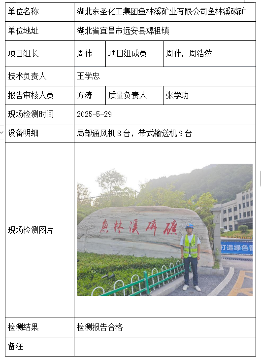 湖北东圣化工集团鱼林溪矿业有限公司鱼林溪磷矿2026/04/092025年检测检验项目 30 上一篇: 吉安市青原区茶家山采石场(普通合伙)下一篇: 湖北宜化江家墩矿业有限公司 相关推荐 长阳县勒石包方解石矿 2026/04/10 7 查看全文 大冶市灵乡正旺铁矿二采区 2026/04/10 4 查看全文 大冶市陈贵安船矿业有限公司 2026/04/10 9 查看全文 保康楚烽化工有限责任公司(楚烽磷矿) 2026/04/10 6 查看全文 您好!请登录 点击取消回复 称呼: 邮箱: 点击这里取消回复。
