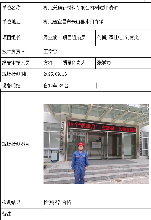湖北兴顺新材料有限公司树崆坪磷矿2026/04/092025年检测检验项目 20 上一篇: 荆门市放马山中磷矿业有限公司下一篇: 大冶市兴红矿业有限公司 相关推荐 长阳县勒石包方解石矿 2026/04/10 7 查看全文 大冶市灵乡正旺铁矿二采区 2026/04/10 4 查看全文 大冶市陈贵安船矿业有限公司 2026/04/10 9 查看全文 保康楚烽化工有限责任公司(楚烽磷矿) 2026/04/10 6 查看全文 您好!请登录 点击取消回复 称呼: 邮箱: 点击这里取消回复。