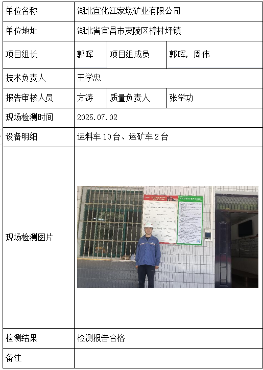 湖北宜化江家墩矿业有限公司2026/04/092025年检测检验项目 20 上一篇: 黄石屏峰资源开发有限公司下一篇: 江西永丰县金丰萤石有限公司 相关推荐 长阳县勒石包方解石矿 2026/04/10 7 查看全文 大冶市灵乡正旺铁矿二采区 2026/04/10 4 查看全文 大冶市陈贵安船矿业有限公司 2026/04/10 9 查看全文 保康楚烽化工有限责任公司(楚烽磷矿) 2026/04/10 6 查看全文 您好!请登录 点击取消回复 称呼: 邮箱: 点击这里取消回复。