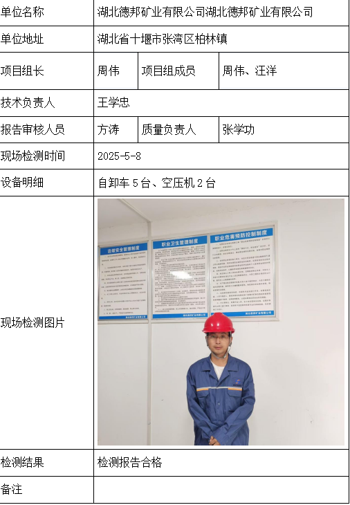 湖北德邦矿业有限公司湖北德邦矿业有限公司2026/04/092025年检测检验项目 20 上一篇: 云南金诚信矿业管理有限公司大冶项目经理部云南金诚信矿业管理有限公司大冶项目经理部下一篇: 钟祥市秦冲磷矿钟祥市秦冲磷矿 相关推荐 长阳县勒石包方解石矿 2026/04/10 7 查看全文 大冶市灵乡正旺铁矿二采区 2026/04/10 4 查看全文 大冶市陈贵安船矿业有限公司 2026/04/10 9 查看全文 保康楚烽化工有限责任公司(楚烽磷矿) 2026/04/10 6 查看全文 您好!请登录 点击取消回复 称呼: 邮箱: 点击这里取消回复。