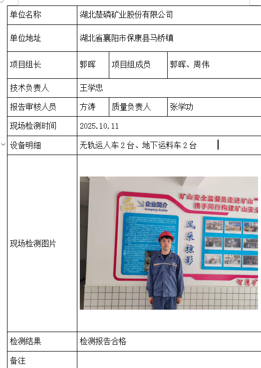 湖北楚磷矿业股份有限公司2026/04/092025年检测检验项目 30 上一篇: 湖北神农磷业科技股份有限公司寨湾磷矿下一篇: 五矿二十三冶建设集团有限公司 相关推荐 长阳县勒石包方解石矿 2026/04/10 7 查看全文 大冶市灵乡正旺铁矿二采区 2026/04/10 4 查看全文 大冶市陈贵安船矿业有限公司 2026/04/10 9 查看全文 保康楚烽化工有限责任公司(楚烽磷矿) 2026/04/10 6 查看全文 您好!请登录 点击取消回复 称呼: 邮箱: 点击这里取消回复。