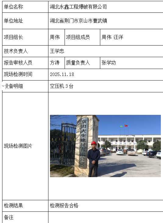 湖北永鑫工程爆破有限公司2026/04/092025年检测检验项目 20 上一篇: 湖北京鹏新材料有限公司下一篇: 湖北光谷东国有资本投资运营集团有限公司 相关推荐 长阳县勒石包方解石矿 2026/04/10 7 查看全文 大冶市灵乡正旺铁矿二采区 2026/04/10 4 查看全文 大冶市陈贵安船矿业有限公司 2026/04/10 9 查看全文 保康楚烽化工有限责任公司(楚烽磷矿) 2026/04/10 6 查看全文 您好!请登录 点击取消回复 称呼: 邮箱: 点击这里取消回复。