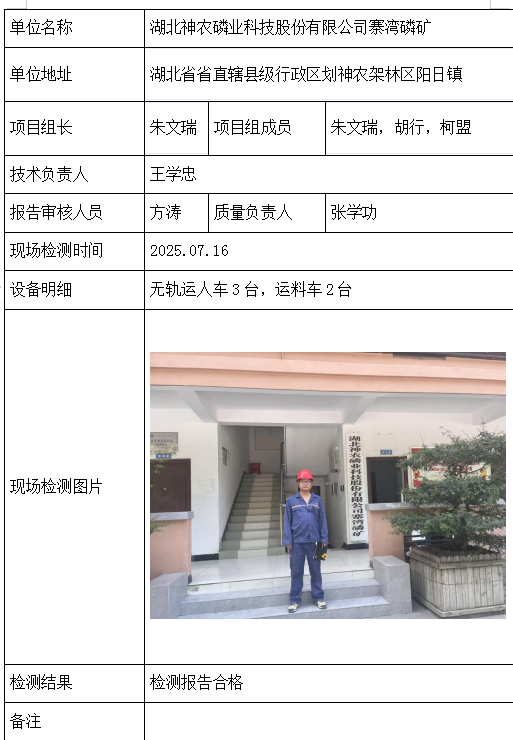 湖北神农磷业科技股份有限公司寨湾磷矿2026/04/092025年检测检验项目 20 上一篇: 阳新县大林山矿业有限公司下一篇: 国闰建设集团有限公司神农架分公司 相关推荐 长阳县勒石包方解石矿 2026/04/10 7 查看全文 大冶市灵乡正旺铁矿二采区 2026/04/10 4 查看全文 大冶市陈贵安船矿业有限公司 2026/04/10 9 查看全文 保康楚烽化工有限责任公司(楚烽磷矿) 2026/04/10 6 查看全文 您好!请登录 点击取消回复 称呼: 邮箱: 点击这里取消回复。