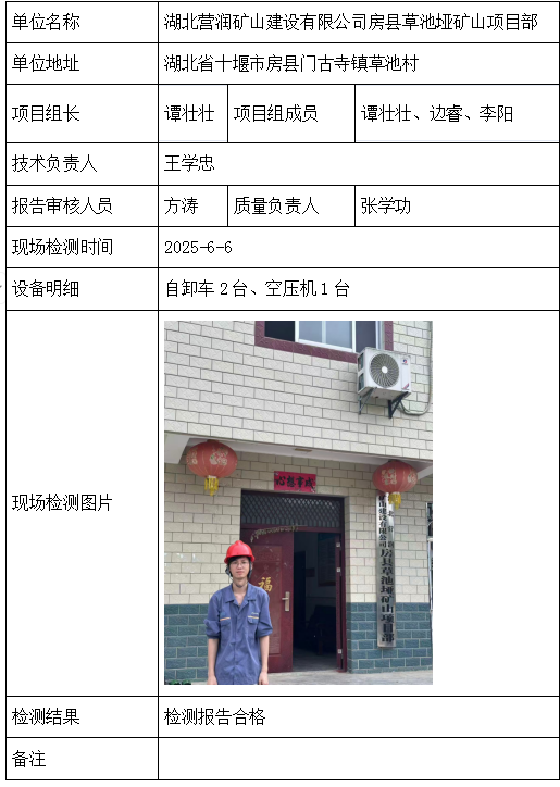 湖北营润矿山建设有限公司房县草池垭矿山项目部2026/04/092025年检测检验项目 30 上一篇: 福建隧畅建设发展有限公司下一篇: 随州市钰丰矿业有限公司 相关推荐 长阳县勒石包方解石矿 2026/04/10 7 查看全文 大冶市灵乡正旺铁矿二采区 2026/04/10 4 查看全文 大冶市陈贵安船矿业有限公司 2026/04/10 9 查看全文 保康楚烽化工有限责任公司(楚烽磷矿) 2026/04/10 6 查看全文 您好!请登录 点击取消回复 称呼: 邮箱: 点击这里取消回复。