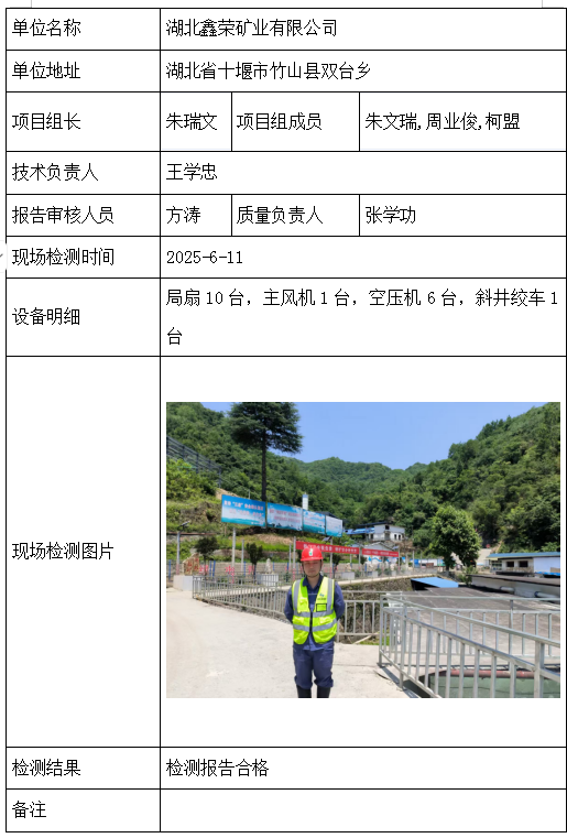 湖北鑫荣矿业有限公司2026/04/092025年检测检验项目 20 上一篇: 五矿二十三冶建设集团有限公司下一篇: 宜昌市明鑫工贸有限公司肖家河磷矿 相关推荐 长阳县勒石包方解石矿 2026/04/10 7 查看全文 大冶市灵乡正旺铁矿二采区 2026/04/10 4 查看全文 大冶市陈贵安船矿业有限公司 2026/04/10 9 查看全文 保康楚烽化工有限责任公司(楚烽磷矿) 2026/04/10 6 查看全文 您好!请登录 点击取消回复 称呼: 邮箱: 点击这里取消回复。