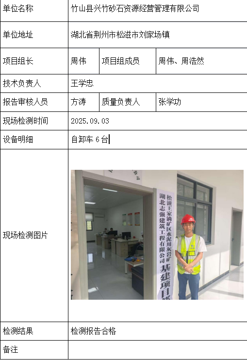 竹山县兴竹砂石资源经营管理有限公司2026/04/092025年检测检验项目 20 上一篇: 竹山县兴竹砂石资源经营管理有限公司下一篇: 保康县中坪磷化工有限公司鳌头山采区 相关推荐 长阳县勒石包方解石矿 2026/04/10 7 查看全文 大冶市灵乡正旺铁矿二采区 2026/04/10 4 查看全文 大冶市陈贵安船矿业有限公司 2026/04/10 9 查看全文 保康楚烽化工有限责任公司(楚烽磷矿) 2026/04/10 6 查看全文 您好!请登录 点击取消回复 称呼: 邮箱: 点击这里取消回复。