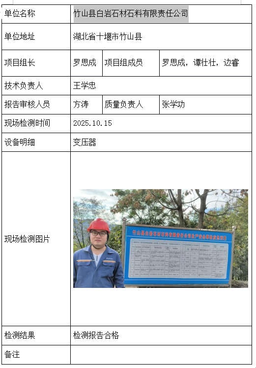 竹山县白岩石材石料有限责任公司2026/04/092025年检测检验项目 20 上一篇: 湖北兴竹建设工程有限公司下一篇: 京山京安工程爆破有限公司 相关推荐 长阳县勒石包方解石矿 2026/04/10 7 查看全文 大冶市灵乡正旺铁矿二采区 2026/04/10 4 查看全文 大冶市陈贵安船矿业有限公司 2026/04/10 9 查看全文 保康楚烽化工有限责任公司(楚烽磷矿) 2026/04/10 6 查看全文 您好!请登录 点击取消回复 称呼: 邮箱: 点击这里取消回复。