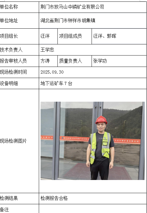 荆门市放马山中磷矿业有限公司2026/04/092025年检测检验项目 30 上一篇: 保康县保丰矿业有限公司下一篇: 湖北兴顺新材料有限公司树崆坪磷矿 相关推荐 长阳县勒石包方解石矿 2026/04/10 7 查看全文 大冶市灵乡正旺铁矿二采区 2026/04/10 4 查看全文 大冶市陈贵安船矿业有限公司 2026/04/10 9 查看全文 保康楚烽化工有限责任公司(楚烽磷矿) 2026/04/10 6 查看全文 您好!请登录 点击取消回复 称呼: 邮箱: 点击这里取消回复。
