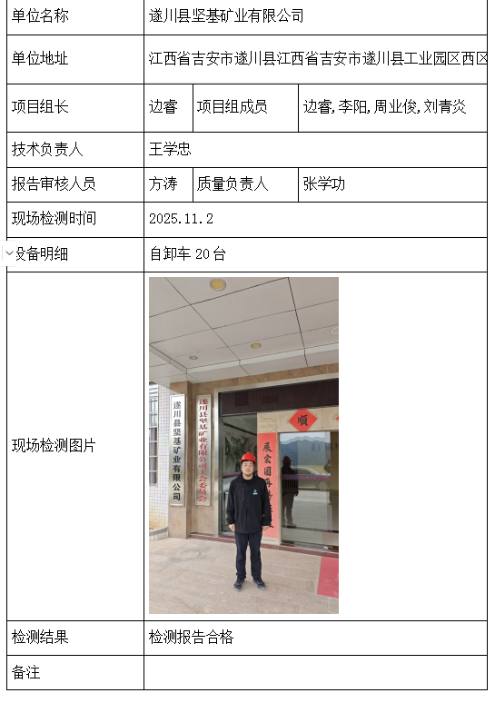 遂川县坚基矿业有限公司2026/04/092025年检测检验项目 20 上一篇: 吉安县学海矿业有限公司下一篇: 新干县桁桥石场(普通合伙) 相关推荐 长阳县勒石包方解石矿 2026/04/10 7 查看全文 大冶市灵乡正旺铁矿二采区 2026/04/10 4 查看全文 大冶市陈贵安船矿业有限公司 2026/04/10 9 查看全文 保康楚烽化工有限责任公司(楚烽磷矿) 2026/04/10 6 查看全文 您好!请登录 点击取消回复 称呼: 邮箱: 点击这里取消回复。