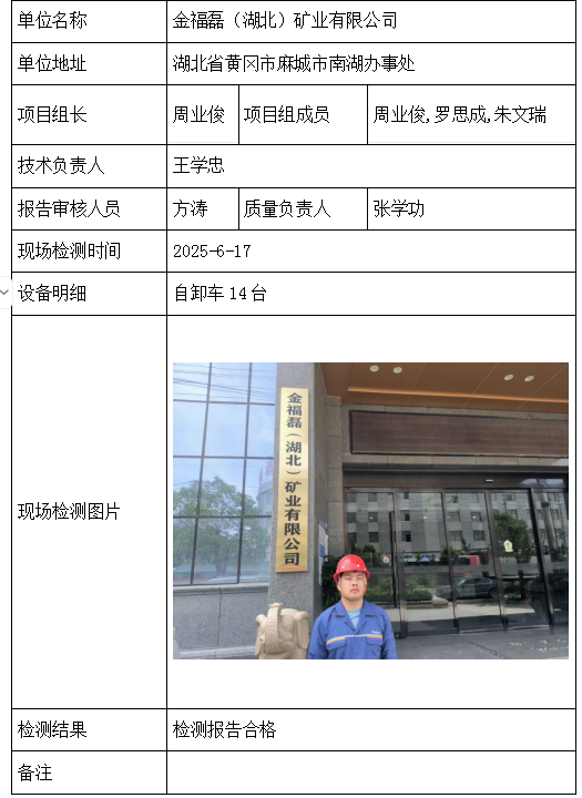 金福磊(湖北)矿业有限公司2026/04/092025年检测检验项目 20 上一篇: 湖北曜圣巨隆矿业有限公司下一篇: 湖北兴顺新材料有限公司树崆坪磷矿 相关推荐 长阳县勒石包方解石矿 2026/04/10 7 查看全文 大冶市灵乡正旺铁矿二采区 2026/04/10 4 查看全文 大冶市陈贵安船矿业有限公司 2026/04/10 9 查看全文 保康楚烽化工有限责任公司(楚烽磷矿) 2026/04/10 6 查看全文 您好!请登录 点击取消回复 称呼: 邮箱: 点击这里取消回复。