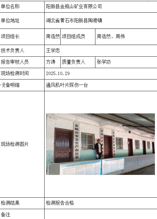 阳新县金瓶山矿业有限公司2026/04/092025年检测检验项目 20 上一篇: 鄂州市鄂城鸿发铁矿下一篇: 大冶市大箕铺三角桥马头山硅灰石矿(普通合伙) 相关推荐 长阳县勒石包方解石矿 2026/04/10 7 查看全文 大冶市灵乡正旺铁矿二采区 2026/04/10 4 查看全文 大冶市陈贵安船矿业有限公司 2026/04/10 9 查看全文 保康楚烽化工有限责任公司(楚烽磷矿) 2026/04/10 6 查看全文 您好!请登录 点击取消回复 称呼: 邮箱: 点击这里取消回复。