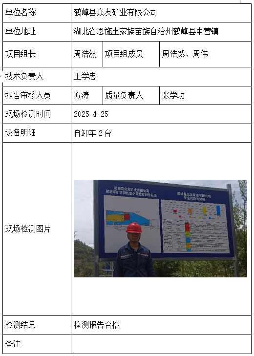 鹤峰县众友矿业有限公司2026/04/092025年检测检验项目 30 上一篇: 鹤峰县白金沙石料有限公司下一篇: 荆门市东宝区凯龙矿业股份有限公司 相关推荐 长阳县勒石包方解石矿 2026/04/10 7 查看全文 大冶市灵乡正旺铁矿二采区 2026/04/10 4 查看全文 大冶市陈贵安船矿业有限公司 2026/04/10 9 查看全文 保康楚烽化工有限责任公司(楚烽磷矿) 2026/04/10 6 查看全文 您好!请登录 点击取消回复 称呼: 邮箱: 点击这里取消回复。