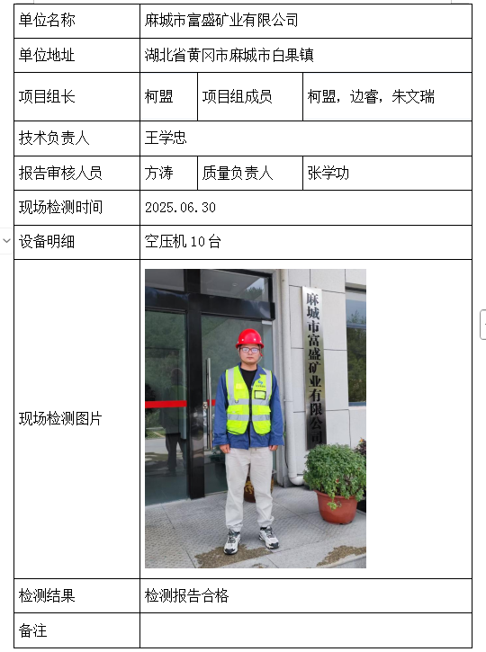 麻城市富盛矿业有限公司2026/04/092025年检测检验项目 20 上一篇: 葛洲坝松滋水泥有限公司月峰山矿山下一篇: 葛洲坝松滋水泥有限公司四方岭矿山 相关推荐 长阳县勒石包方解石矿 2026/04/10 7 查看全文 大冶市灵乡正旺铁矿二采区 2026/04/10 4 查看全文 大冶市陈贵安船矿业有限公司 2026/04/10 9 查看全文 保康楚烽化工有限责任公司(楚烽磷矿) 2026/04/10 6 查看全文 您好!请登录 点击取消回复 称呼: 邮箱: 点击这里取消回复。