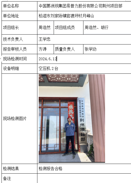 中国葛洲坝集团易普力股份有限公司荆州项目部2026/04/102024年检测检验项目 00 上一篇: 大冶市兴红矿业有限公司下一篇: 京山鞍顺建材有限公司 相关推荐 黄梅龙源石膏有限公司 2026/04/13 2 查看全文 湖北威泰绿建科技有限公司 2026/04/13 3 查看全文 保康县鑫润矿业有限责任公司康家沟磷矿一采区 2026/04/13 3 查看全文 湖北杉树垭矿业有限公司 2026/04/13 2 查看全文 您好!请登录 点击取消回复 称呼: 邮箱: 点击这里取消回复。