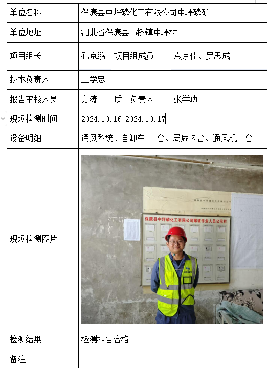 保康县中坪磷化工有限公司中坪磷矿2026/04/102024年检测检验项目 10 上一篇: 宜昌诚信工贸有限责任公司孙家墩磷矿下一篇: 湖北东新工程有限公司宜昌分公司 相关推荐 黄梅龙源石膏有限公司 2026/04/13 2 查看全文 湖北威泰绿建科技有限公司 2026/04/13 3 查看全文 保康县鑫润矿业有限责任公司康家沟磷矿一采区 2026/04/13 3 查看全文 湖北杉树垭矿业有限公司 2026/04/13 2 查看全文 您好!请登录 点击取消回复 称呼: 邮箱: 点击这里取消回复。