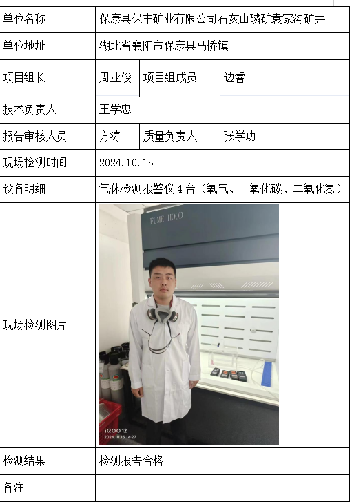 保康县保丰矿业有限公司石灰山磷矿袁家沟矿井2026/04/102024年检测检验项目 20 上一篇: 大冶市陈贵刘家畈矿业有限公司下一篇: 宜昌诚信工贸有限责任公司孙家墩磷矿 相关推荐 黄梅龙源石膏有限公司 2026/04/13 2 查看全文 湖北威泰绿建科技有限公司 2026/04/13 3 查看全文 保康县鑫润矿业有限责任公司康家沟磷矿一采区 2026/04/13 3 查看全文 湖北杉树垭矿业有限公司 2026/04/13 2 查看全文 您好!请登录 点击取消回复 称呼: 邮箱: 点击这里取消回复。