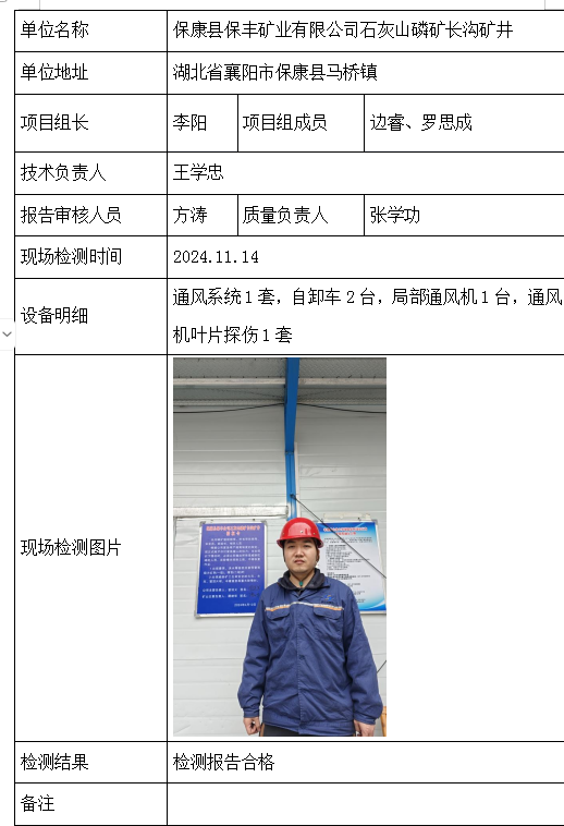 保康县保丰矿业有限公司石灰山磷矿长沟矿井2026/04/102024年检测检验项目 10 上一篇: 松滋市鼎盛矿业有限公司下一篇: 大冶市陈贵刘家畈矿业有限公司 相关推荐 黄梅龙源石膏有限公司 2026/04/13 2 查看全文 湖北威泰绿建科技有限公司 2026/04/13 3 查看全文 保康县鑫润矿业有限责任公司康家沟磷矿一采区 2026/04/13 3 查看全文 湖北杉树垭矿业有限公司 2026/04/13 2 查看全文 您好!请登录 点击取消回复 称呼: 邮箱: 点击这里取消回复。