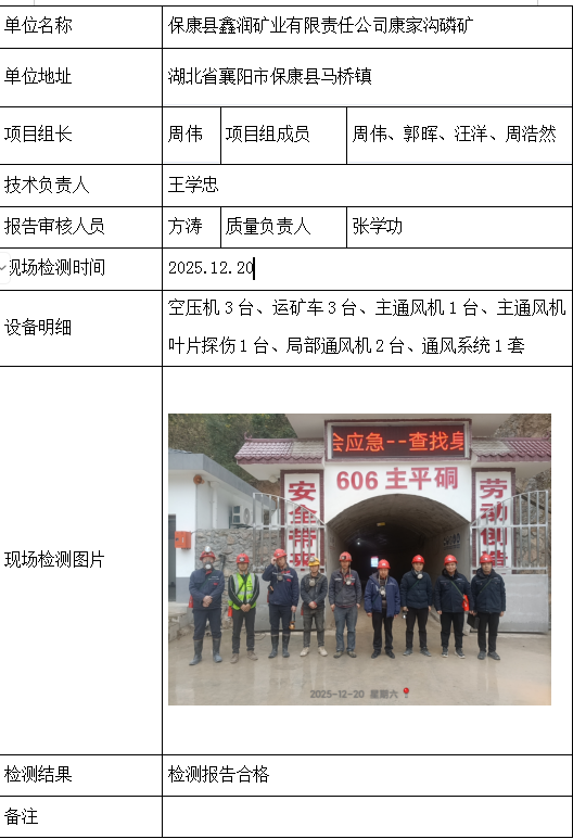 保康县鑫润矿业有限责任公司康家沟磷矿2026/04/102025年检测检验项目 30 上一篇: 大冶有色金属有限责任公司铜山口铜矿下一篇: 保康县保丰矿业有限公司石灰山磷矿茅草岭矿井 相关推荐 长阳县勒石包方解石矿 2026/04/10 7 查看全文 大冶市灵乡正旺铁矿二采区 2026/04/10 4 查看全文 大冶市陈贵安船矿业有限公司 2026/04/10 9 查看全文 保康楚烽化工有限责任公司(楚烽磷矿) 2026/04/10 6 查看全文 您好!请登录 点击取消回复 称呼: 邮箱: 点击这里取消回复。