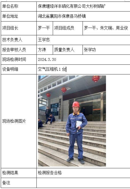 保康堰垭洋丰磷化有限公司大杉树磷矿2026/04/102024年检测检验项目 00 上一篇: 钟祥市秦冲磷矿(刘冲采区)下一篇: 大冶市大箕铺镇石家堍马石头硅灰石矿 相关推荐 黄梅龙源石膏有限公司 2026/04/13 2 查看全文 湖北威泰绿建科技有限公司 2026/04/13 3 查看全文 保康县鑫润矿业有限责任公司康家沟磷矿一采区 2026/04/13 3 查看全文 湖北杉树垭矿业有限公司 2026/04/13 2 查看全文 您好!请登录 点击取消回复 称呼: 邮箱: 点击这里取消回复。