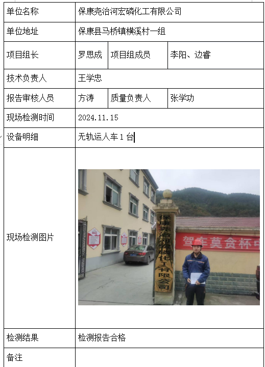 保康尧治河宏磷化工有限公司2026/04/102024年检测检验项目 10 上一篇: 保康县保丰矿业有限公司石灰山磷矿茅草岭矿井下一篇: 保康竹园沟矿业有限公司 相关推荐 黄梅龙源石膏有限公司 2026/04/13 2 查看全文 湖北威泰绿建科技有限公司 2026/04/13 3 查看全文 保康县鑫润矿业有限责任公司康家沟磷矿一采区 2026/04/13 3 查看全文 湖北杉树垭矿业有限公司 2026/04/13 2 查看全文 您好!请登录 点击取消回复 称呼: 邮箱: 点击这里取消回复。