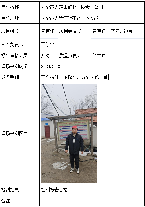 大冶市大志山矿业有限责任公司2026/04/102024年检测检验项目 00 上一篇: 湖北曜圣矿业有限公司下一篇: 峡江县戈坪铁矿有限公司 相关推荐 黄梅龙源石膏有限公司 2026/04/13 2 查看全文 湖北威泰绿建科技有限公司 2026/04/13 3 查看全文 保康县鑫润矿业有限责任公司康家沟磷矿一采区 2026/04/13 3 查看全文 湖北杉树垭矿业有限公司 2026/04/13 2 查看全文 您好!请登录 点击取消回复 称呼: 邮箱: 点击这里取消回复。