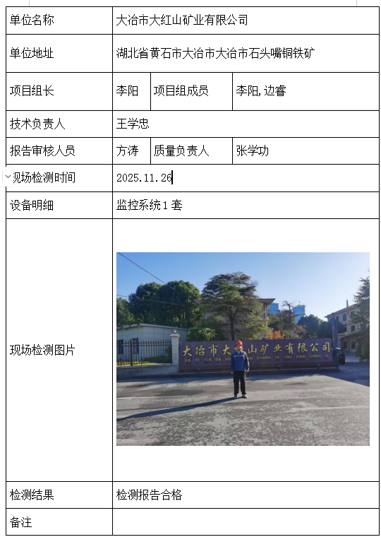 大冶市大红山矿业有限公司2026/04/102025年检测检验项目 20 上一篇: 大冶市方盛矿业有限责任公司下一篇: 大冶市大红山矿业有限公司勤缘采区 相关推荐 长阳县勒石包方解石矿 2026/04/10 7 查看全文 大冶市灵乡正旺铁矿二采区 2026/04/10 4 查看全文 大冶市陈贵安船矿业有限公司 2026/04/10 9 查看全文 保康楚烽化工有限责任公司(楚烽磷矿) 2026/04/10 6 查看全文 您好!请登录 点击取消回复 称呼: 邮箱: 点击这里取消回复。
