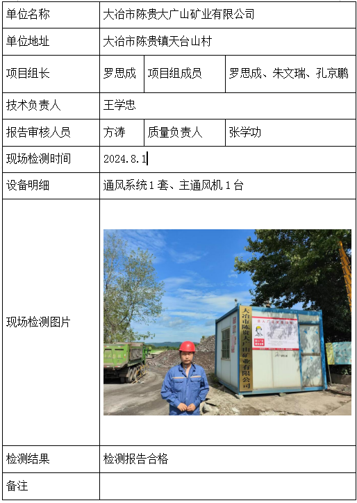 大冶市陈贵大广山矿业有限公司2026/04/102024年检测检验项目 00 上一篇: 湖北博正建筑工程有限公司下一篇: 湖北三宁矿业有限公司挑水河磷矿东部矿段896工区 相关推荐 黄梅龙源石膏有限公司 2026/04/13 2 查看全文 湖北威泰绿建科技有限公司 2026/04/13 3 查看全文 保康县鑫润矿业有限责任公司康家沟磷矿一采区 2026/04/13 3 查看全文 湖北杉树垭矿业有限公司 2026/04/13 2 查看全文 您好!请登录 点击取消回复 称呼: 邮箱: 点击这里取消回复。
