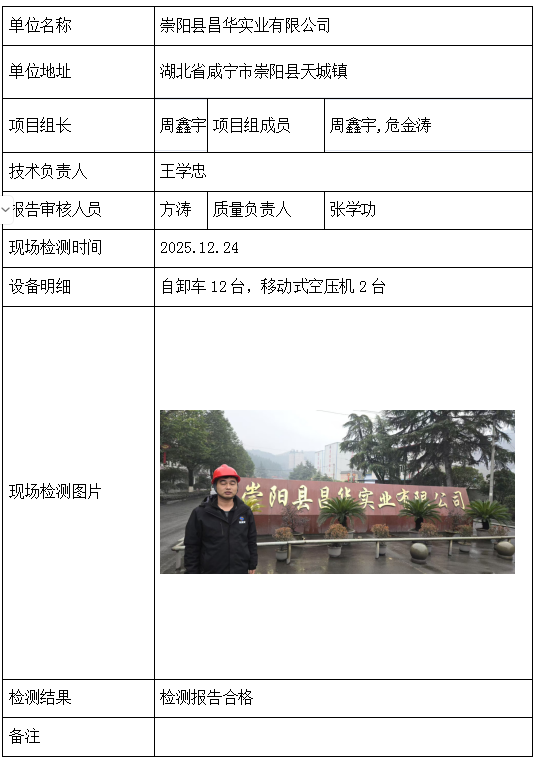 崇阳县昌华实业有限公司2026/04/102025年检测检验项目 20 上一篇: 中国水利水电第八工程局有限公司蕲春新材料工程总包部下一篇: 湖北冯家山矿业有限责任公司 相关推荐 长阳县勒石包方解石矿 2026/04/10 7 查看全文 大冶市灵乡正旺铁矿二采区 2026/04/10 4 查看全文 大冶市陈贵安船矿业有限公司 2026/04/10 9 查看全文 保康楚烽化工有限责任公司(楚烽磷矿) 2026/04/10 6 查看全文 您好!请登录 点击取消回复 称呼: 邮箱: 点击这里取消回复。