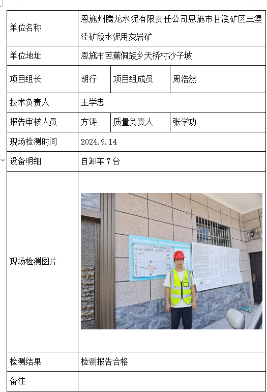 恩施州腾龙水泥有限责任公司恩施市甘溪矿区三堡洼矿段水泥用灰岩矿2026/04/102024年检测检验项目 00 上一篇: 恩施山丰石业有限公司下一篇: 湖北通瑞达矿业有限公司 相关推荐 黄梅龙源石膏有限公司 2026/04/13 2 查看全文 湖北威泰绿建科技有限公司 2026/04/13 3 查看全文 保康县鑫润矿业有限责任公司康家沟磷矿一采区 2026/04/13 3 查看全文 湖北杉树垭矿业有限公司 2026/04/13 2 查看全文 您好!请登录 点击取消回复 称呼: 邮箱: 点击这里取消回复。