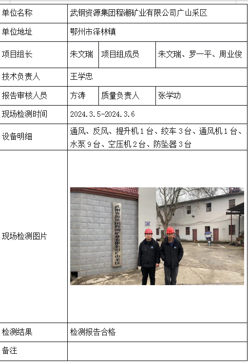 武钢资源集团程潮矿业有限公司广山采区2026/04/102024年检测检验项目 00 上一篇: 荆门市华星工程建设有限公司下一篇: 湖北东圣化工集团东达矿业有限公司晒旗河磷矿 相关推荐 黄梅龙源石膏有限公司 2026/04/13 2 查看全文 湖北威泰绿建科技有限公司 2026/04/13 3 查看全文 保康县鑫润矿业有限责任公司康家沟磷矿一采区 2026/04/13 3 查看全文 湖北杉树垭矿业有限公司 2026/04/13 2 查看全文 您好!请登录 点击取消回复 称呼: 邮箱: 点击这里取消回复。