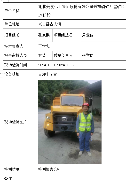 湖北兴发化工集团股份有限公司兴神磷矿瓦屋矿区IV矿段2026/04/102024年检测检验项目 10 上一篇: 湖北兴宏矿业有限公司兴昌磷矿下一篇: 湖北兴顺矿业有限公司后坪磷矿 相关推荐 黄梅龙源石膏有限公司 2026/04/13 2 查看全文 湖北威泰绿建科技有限公司 2026/04/13 3 查看全文 保康县鑫润矿业有限责任公司康家沟磷矿一采区 2026/04/13 3 查看全文 湖北杉树垭矿业有限公司 2026/04/13 2 查看全文 您好!请登录 点击取消回复 称呼: 邮箱: 点击这里取消回复。