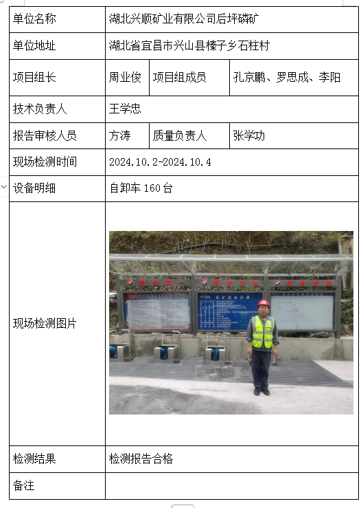 湖北兴顺矿业有限公司后坪磷矿2026/04/102024年检测检验项目 20 上一篇: 湖北兴发化工集团股份有限公司兴神磷矿瓦屋矿区IV矿段下一篇: 湖北宜化江家墩矿业有限公司 相关推荐 黄梅龙源石膏有限公司 2026/04/13 2 查看全文 湖北威泰绿建科技有限公司 2026/04/13 3 查看全文 保康县鑫润矿业有限责任公司康家沟磷矿一采区 2026/04/13 3 查看全文 湖北杉树垭矿业有限公司 2026/04/13 2 查看全文 您好!请登录 点击取消回复 称呼: 邮箱: 点击这里取消回复。